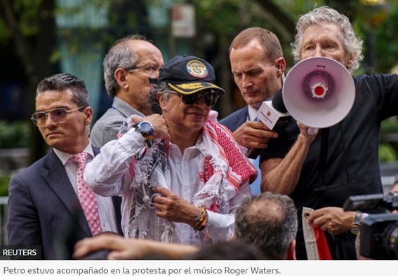 "¡Desobedezcan la orden de Trump! ¡Obedezcan la orden de la humanidad!", añadió Petro, quien estaba acompañado del músico británico Rogers Waters, cofundador de la banda Pink Floyd.