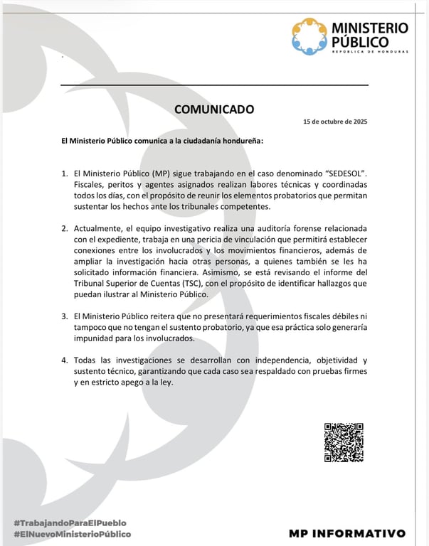 El ente investigador también revisa minuciosamente el informe del Tribunal Superior de Cuentas, con el propósito de detectar posibles hallazgos que refuercen la acusación.