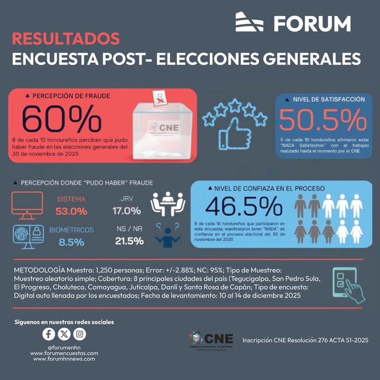 ENCUESTA FORUM – PERCEPCIÓN DE LOS HONDUREÑOS SOBRE EL PROCESO ELECTORAL DEL 30 DE NOVIEMBRE 2025